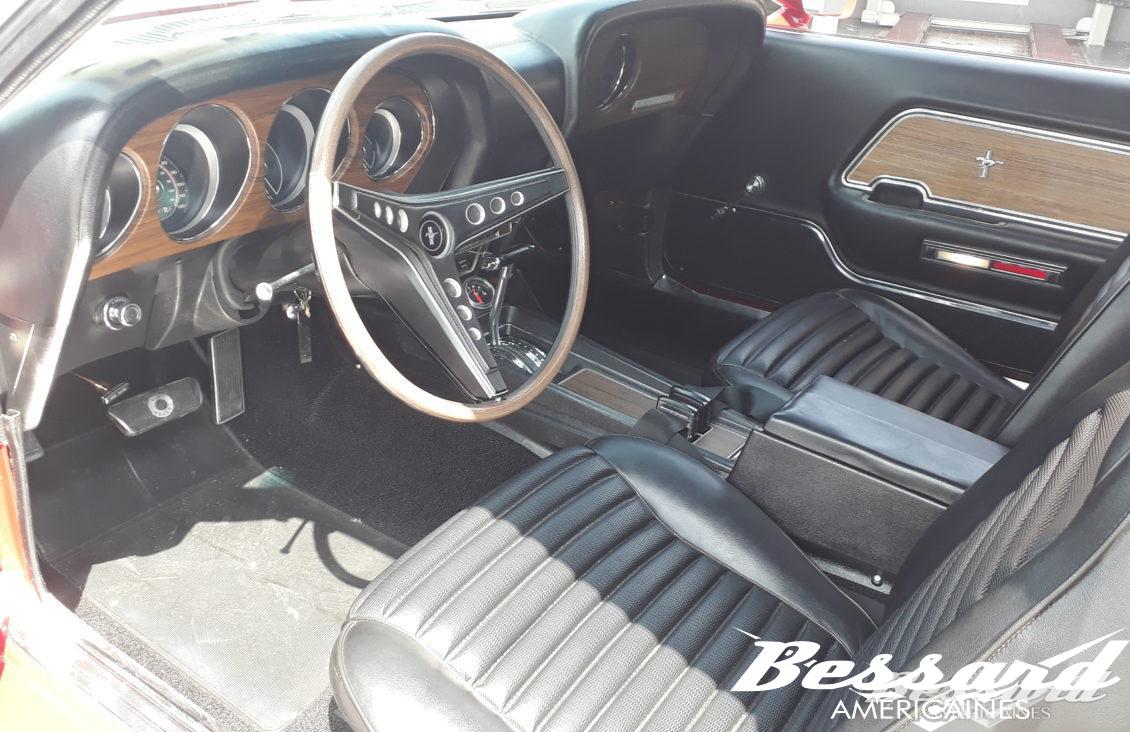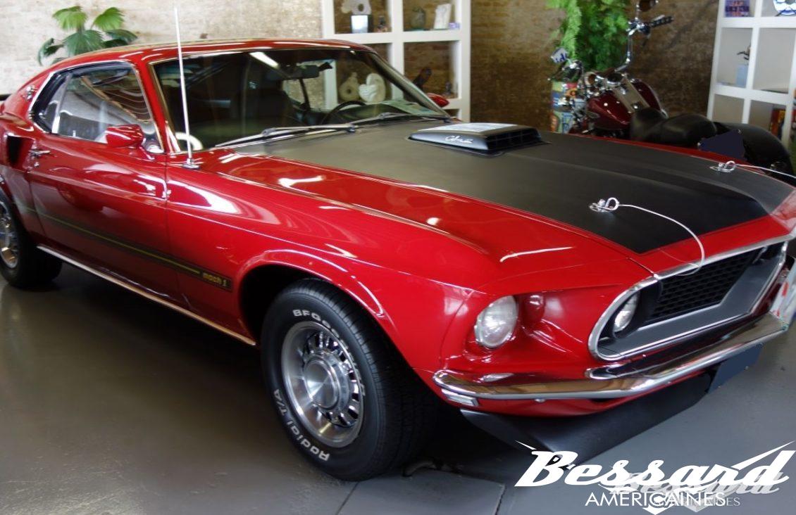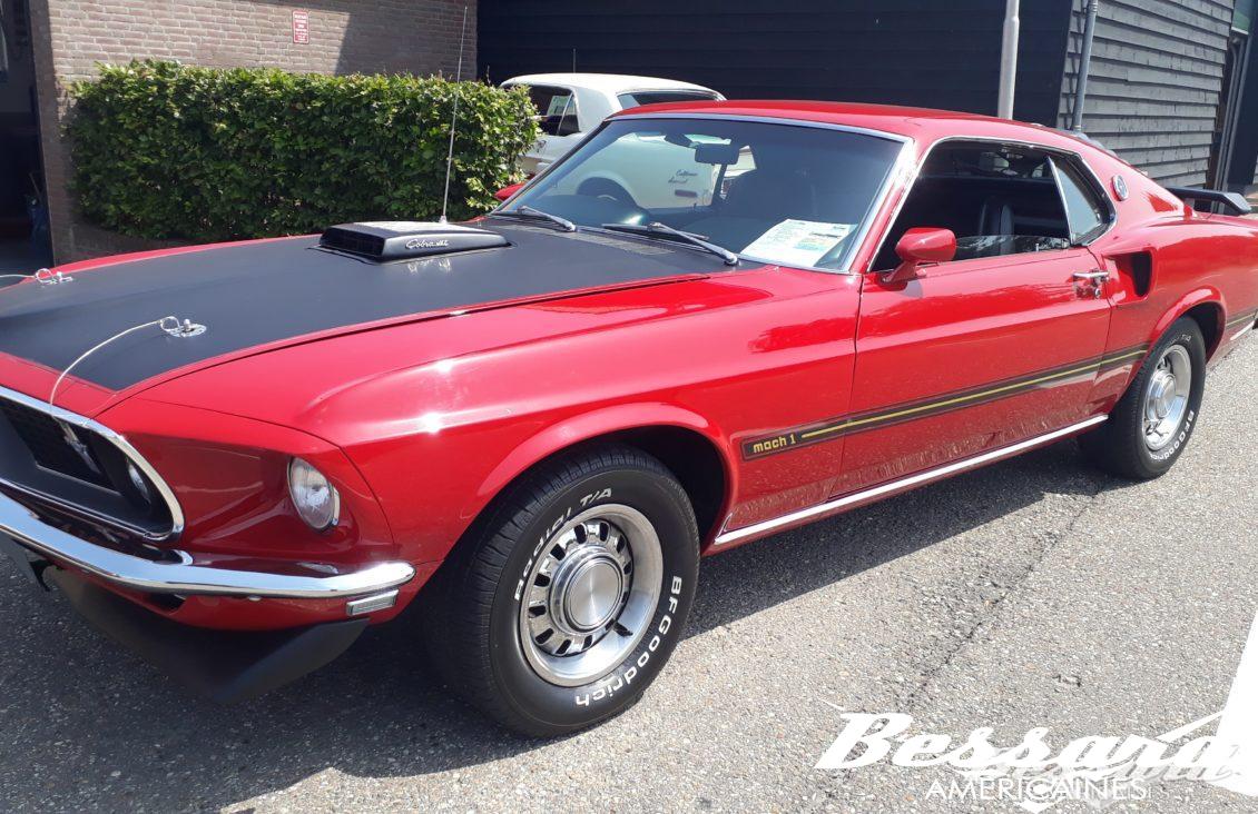 Ford Mustang Mach1 Cobra Jet 1969, moteur V8 428ci et transmission automatique. Une restauration totale, il y a 12 ans dans un célèbre atelier Américain a fait de ce bolide entièrement original,un exemplaire showroom!